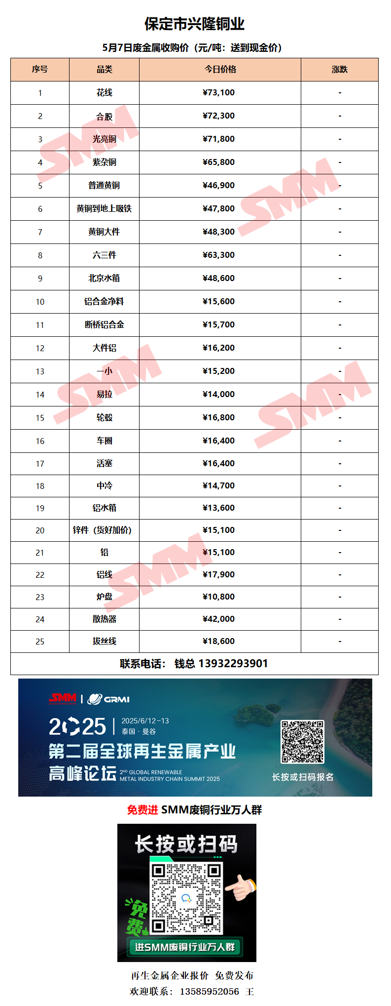 5月7日保定兴隆铜业 废铜采购报价