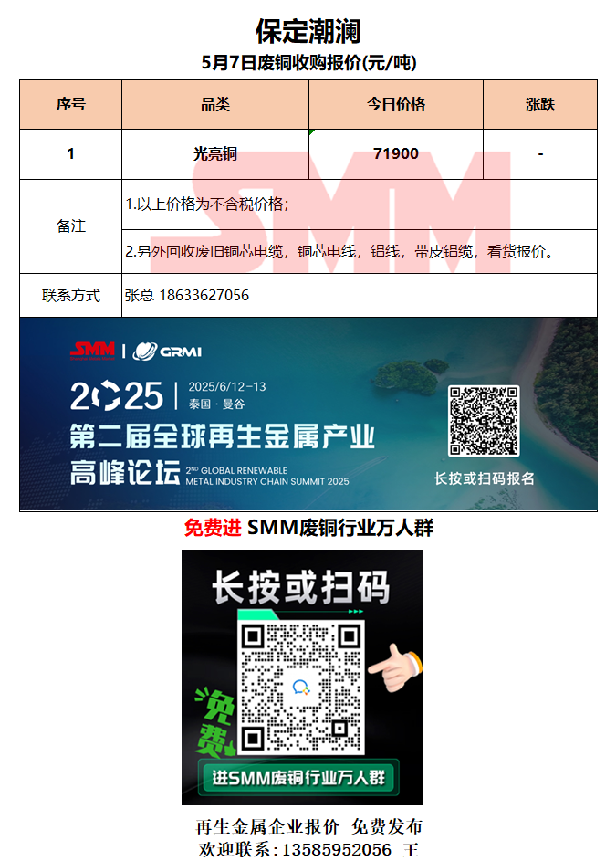5月7日保定潮澜 废铜采购报价