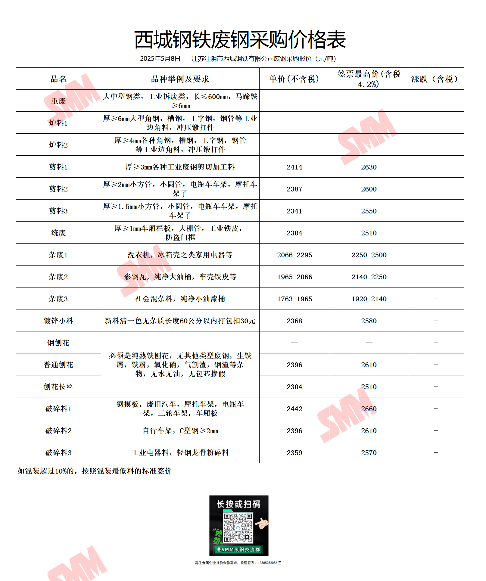 今日西城钢铁 废钢采购报价已更新,有货的朋友欢迎联系我们!
