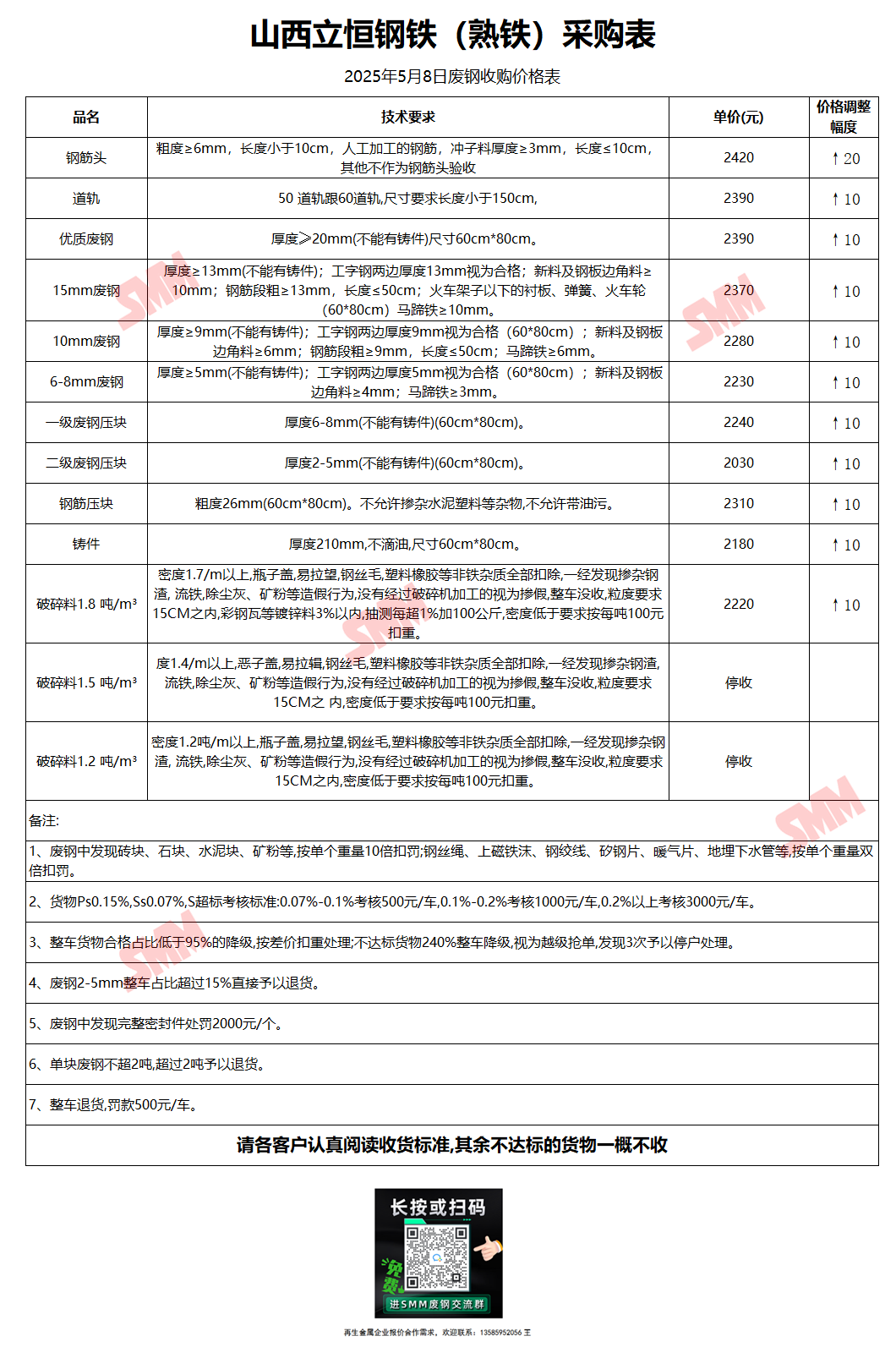 今日山西立恒钢铁 废钢收购报价已更新,有货的朋友欢迎联系我们!