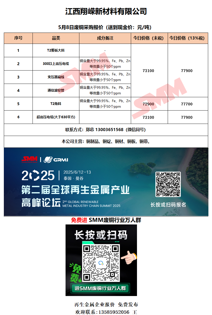 今日江西翔嵘新材料 废铜采购报价已更新,有货的朋友欢迎联系我们!