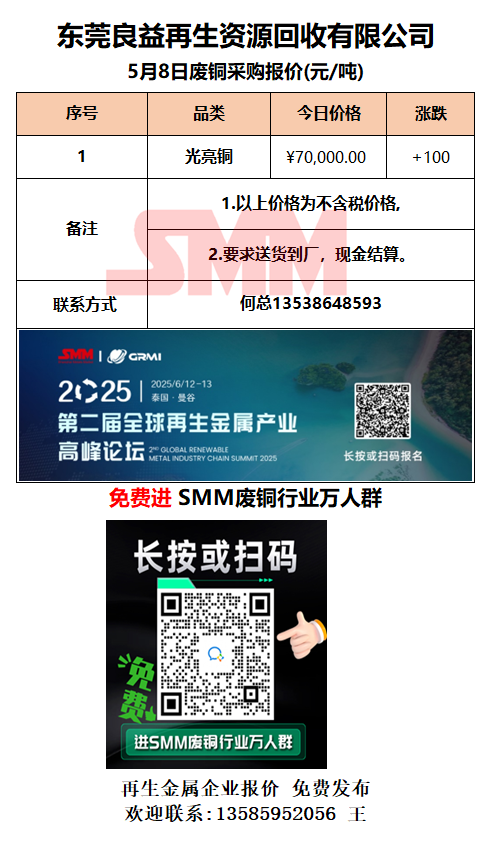 5月8日东莞良益 废铜采购报价