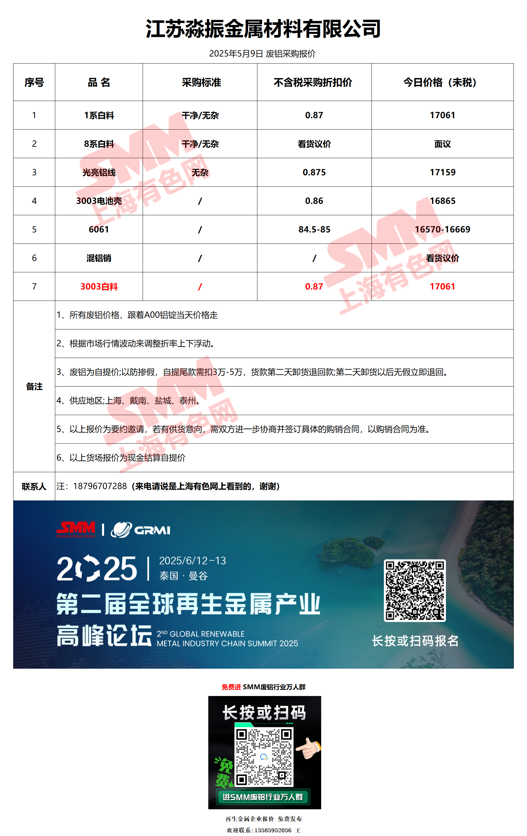 5月9日江苏淼振 废铝采购报价