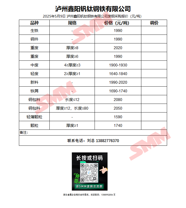 5月9日 泸州鑫阳钒钛 废钢采购报价