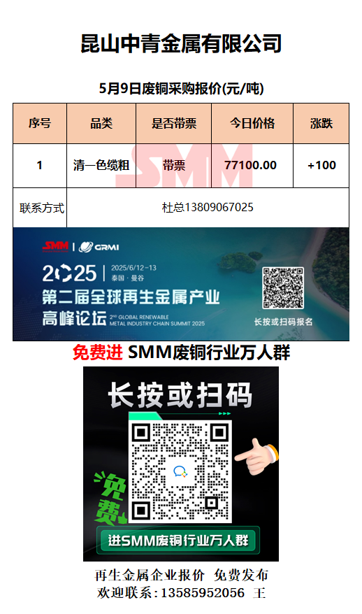 5月9日昆山中青 废铜采购报价