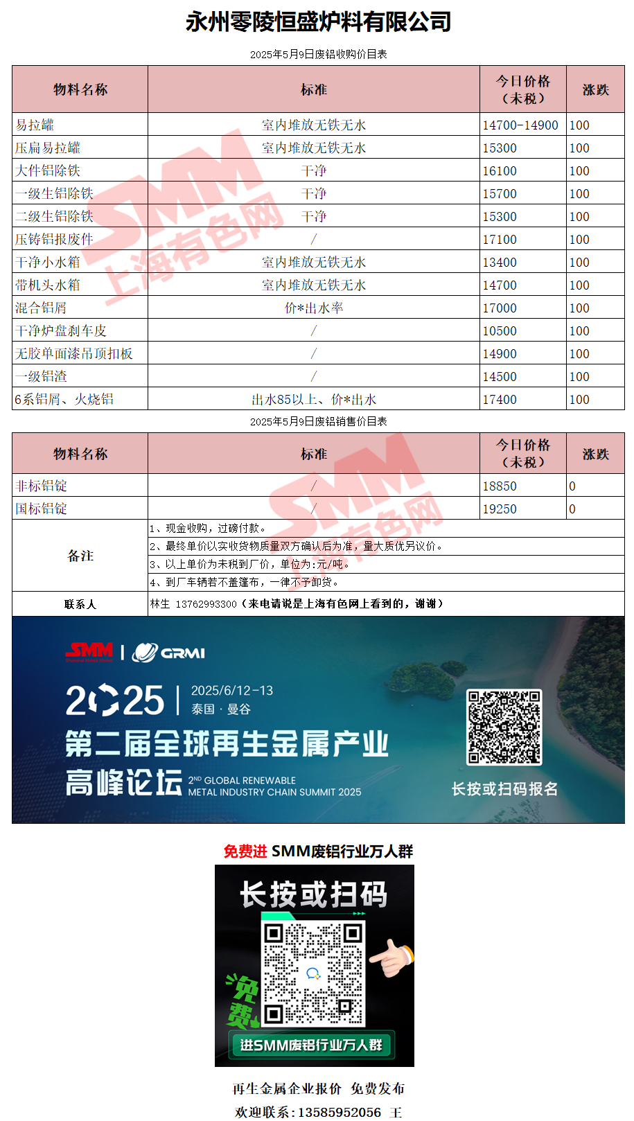今日湖南恒盛 废铝采购报价已更新,有货的朋友欢迎联系我们!