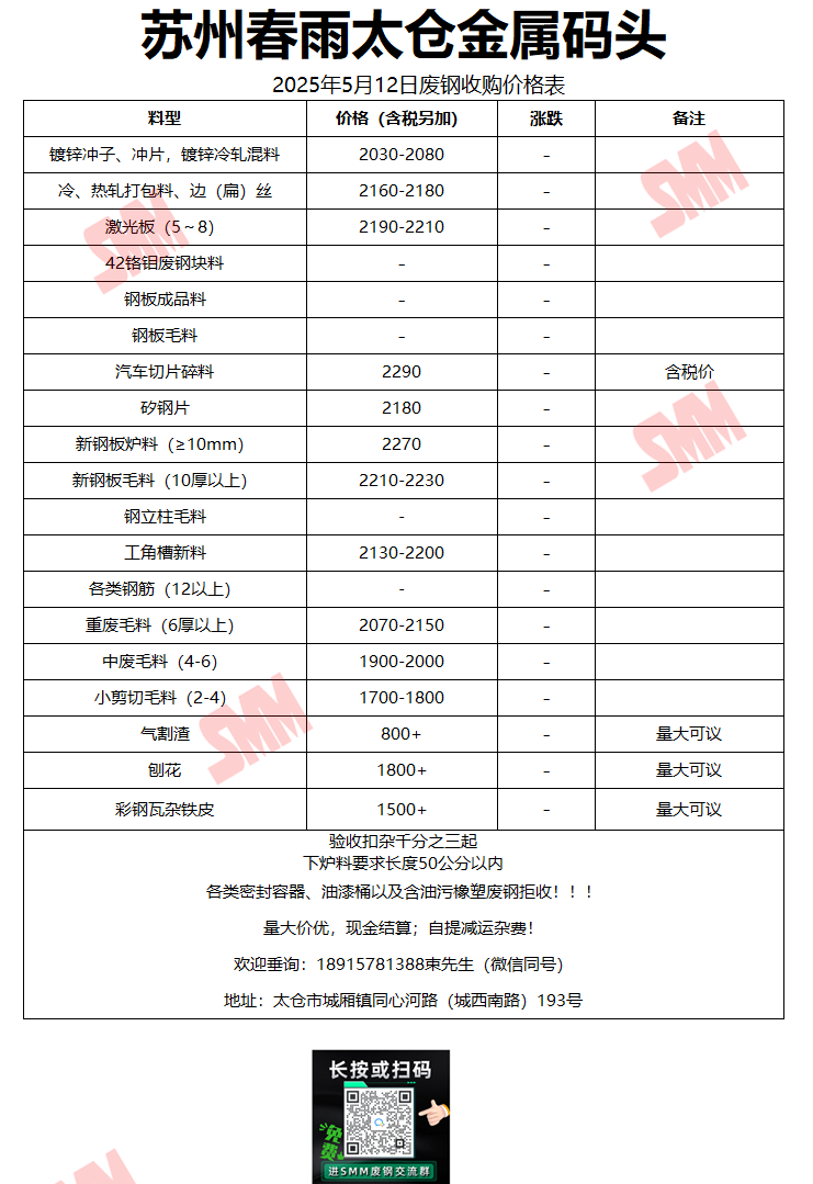 今日苏州春雨 废钢收购报价已更新,有货的朋友欢迎联系我们!