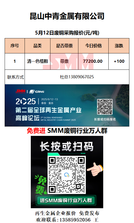 5月12日昆山中青 废铜采购报价