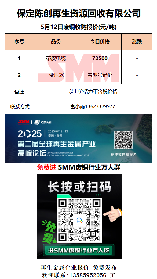今日保定陈创 废铜采购报价已更新,有货的朋友欢迎联系我们!