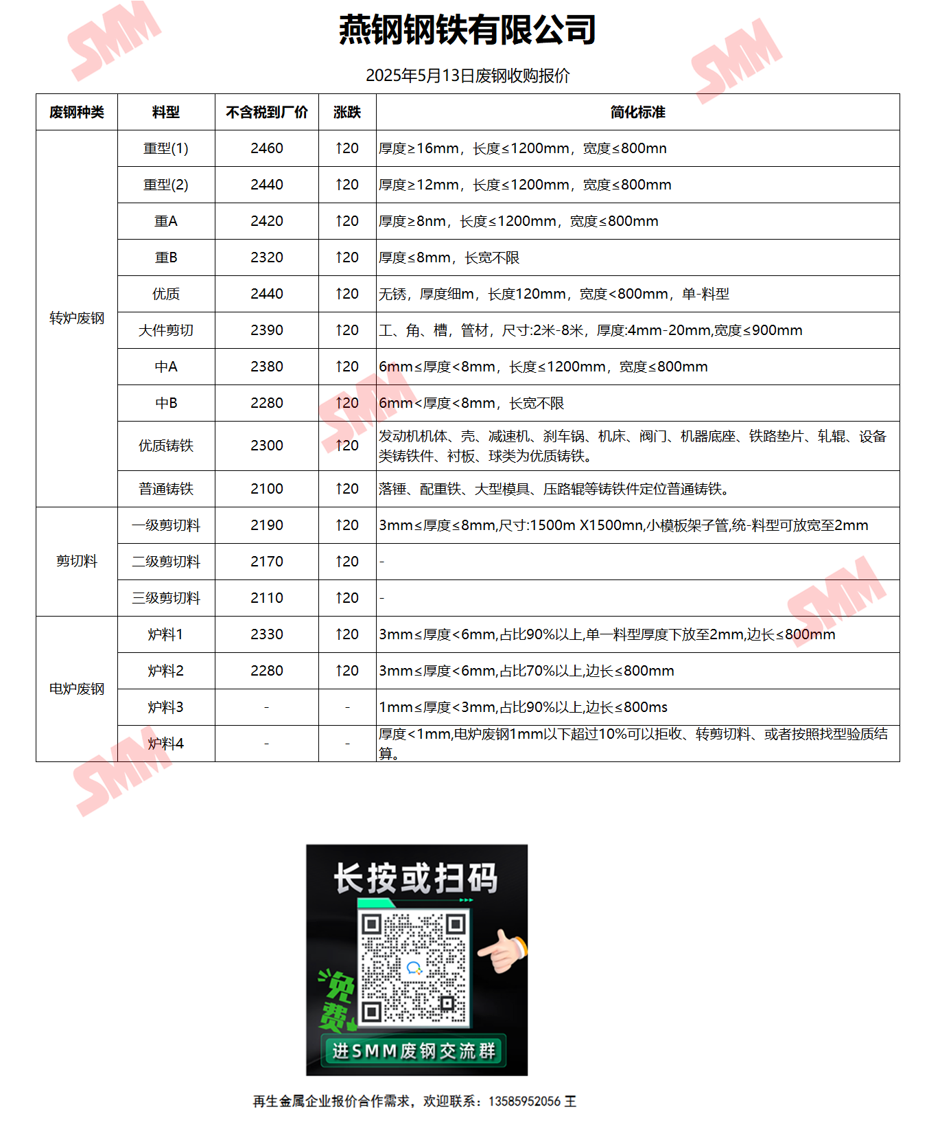 今日燕钢钢铁 废钢收购报价已更新,有货的朋友欢迎联系我们!