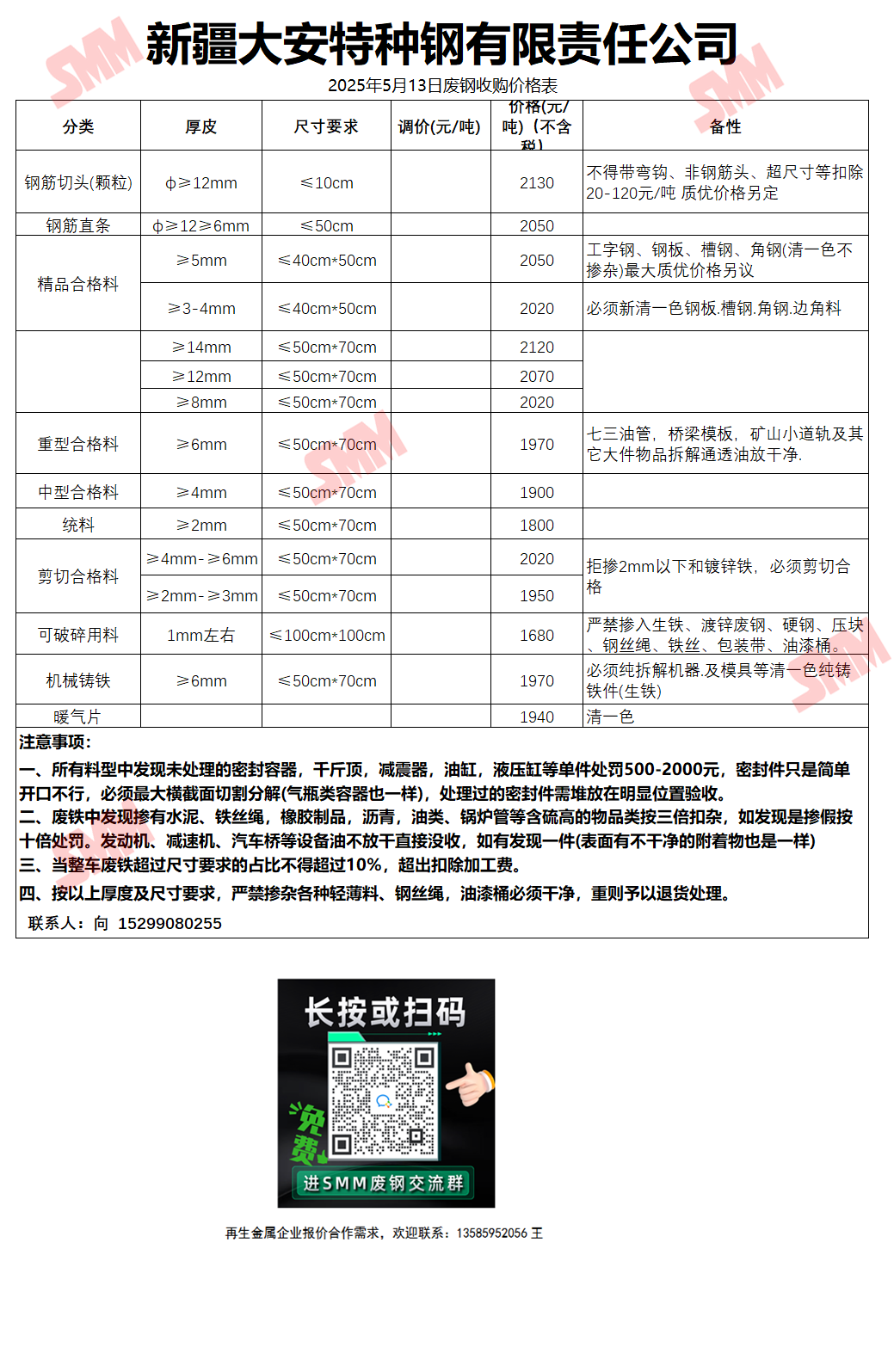 今日新疆大安钢铁 废钢收购报价已更新,有货的朋友欢迎联系我们!