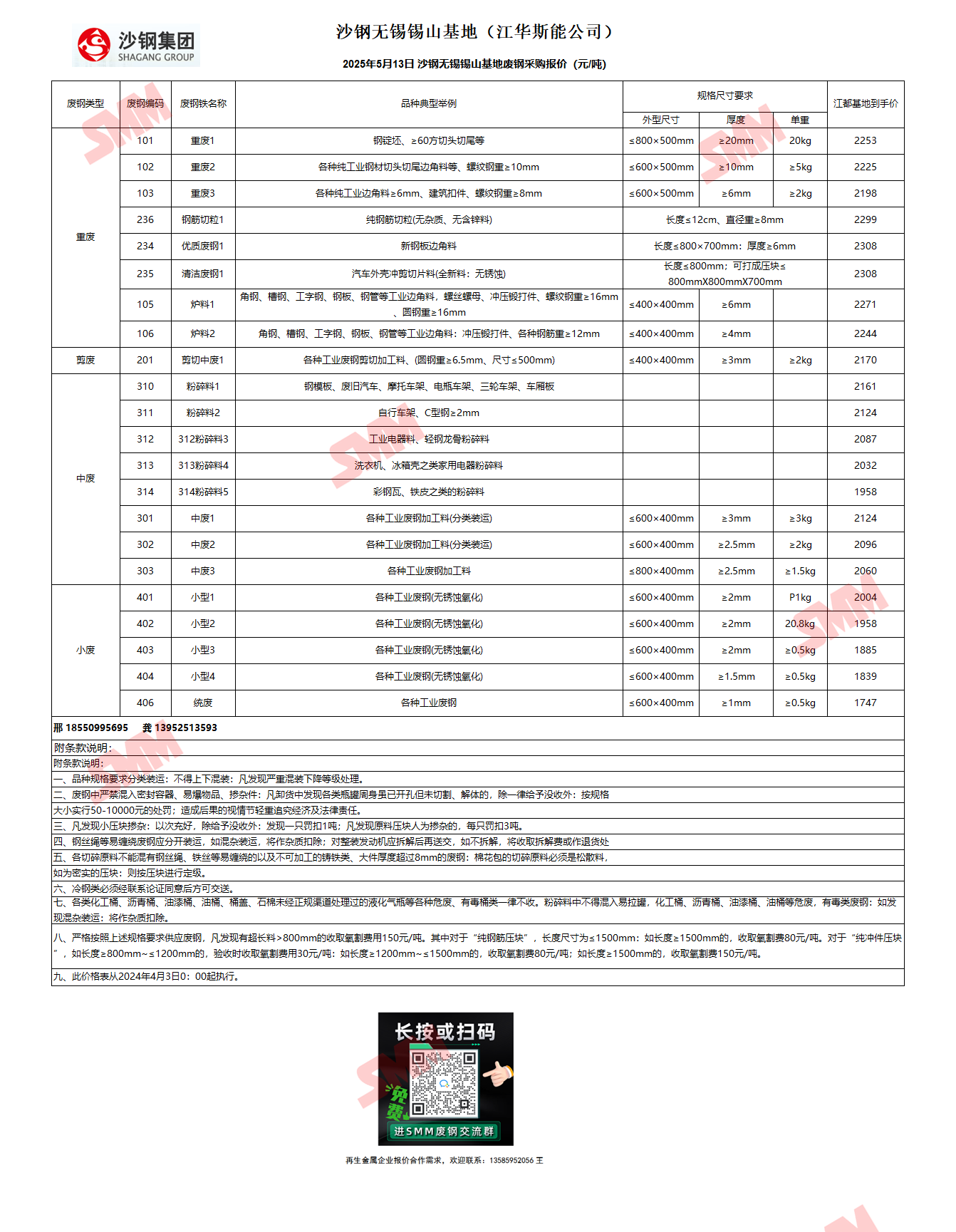 今日沙钢锡山基地 废钢采购报价已更新,有货的朋友欢迎联系我们!