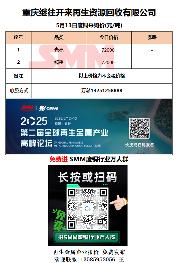 今日重庆继往开来 废铜采购报价已更新,有货的朋友欢迎联系我们!