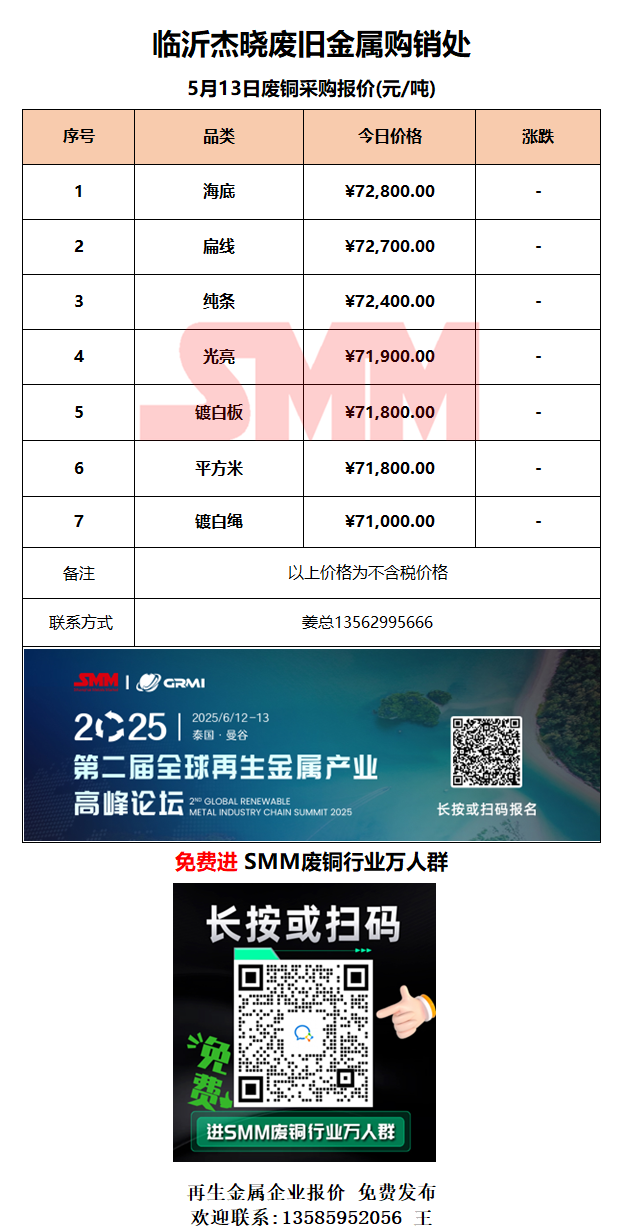 5月13日临沂杰晓 废铜采购报价