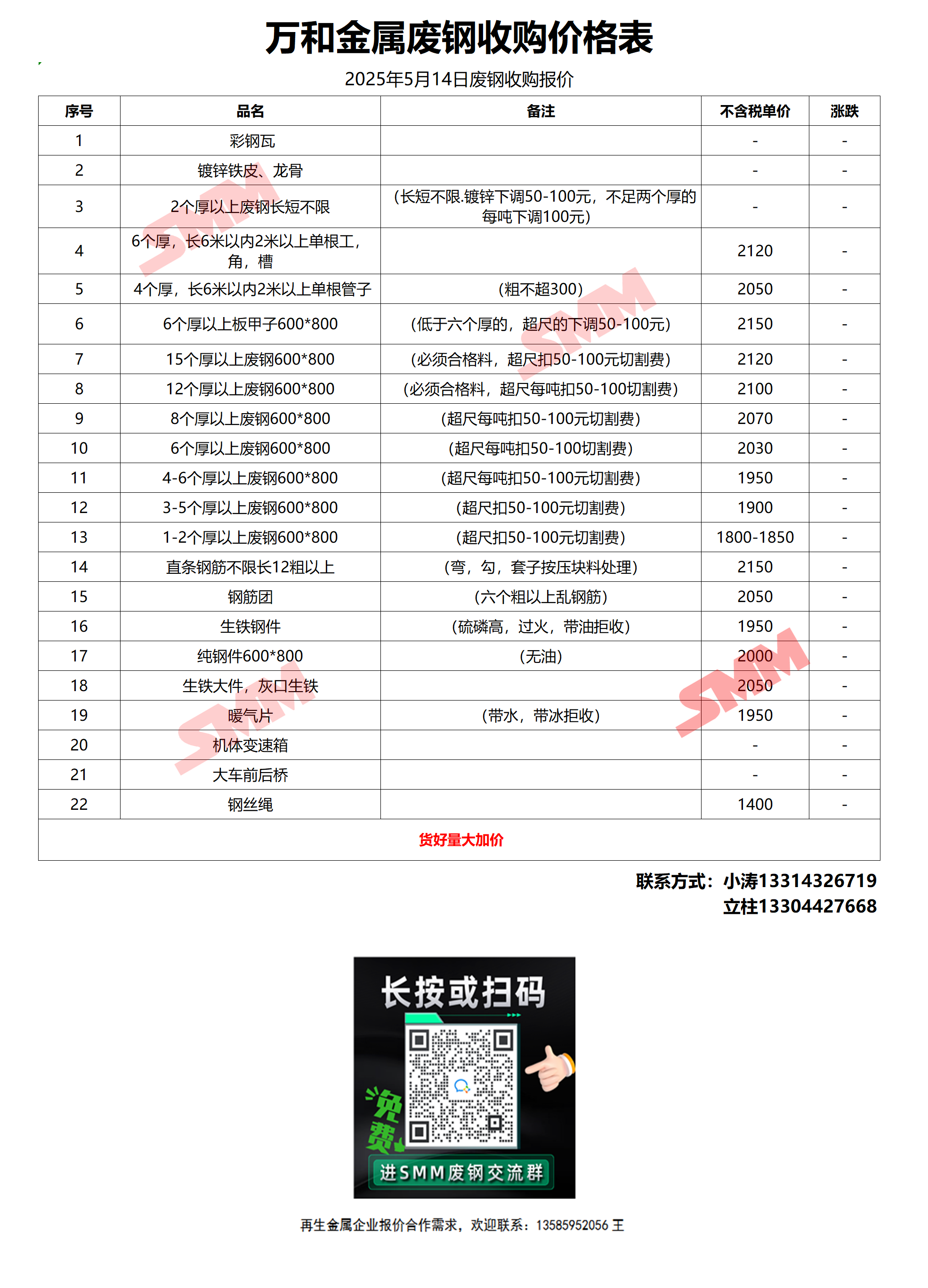 今日万和金属 废钢收购报价已更新,有货的朋友欢迎联系我们!