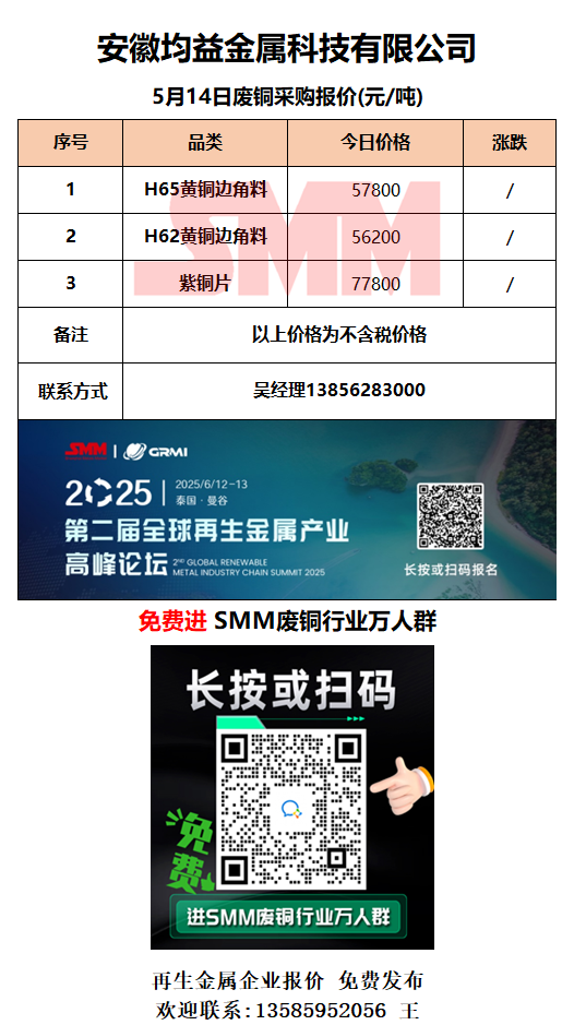 5月14日安徽均益 废铜采购报价