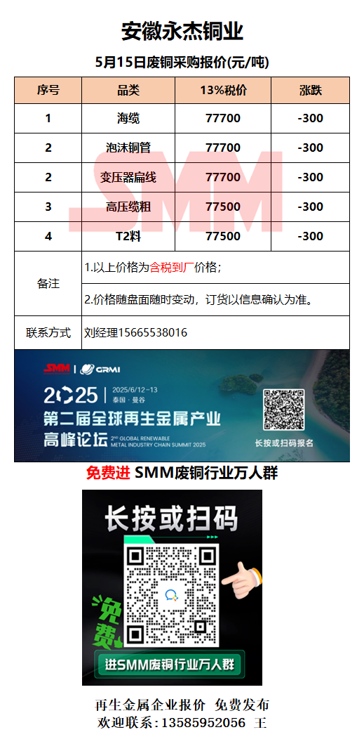 5月15日安徽永杰 废铜采购报价