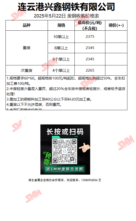 今日连云港兴鑫 废钢收购报价已更新,有货的朋友欢迎联系我们!