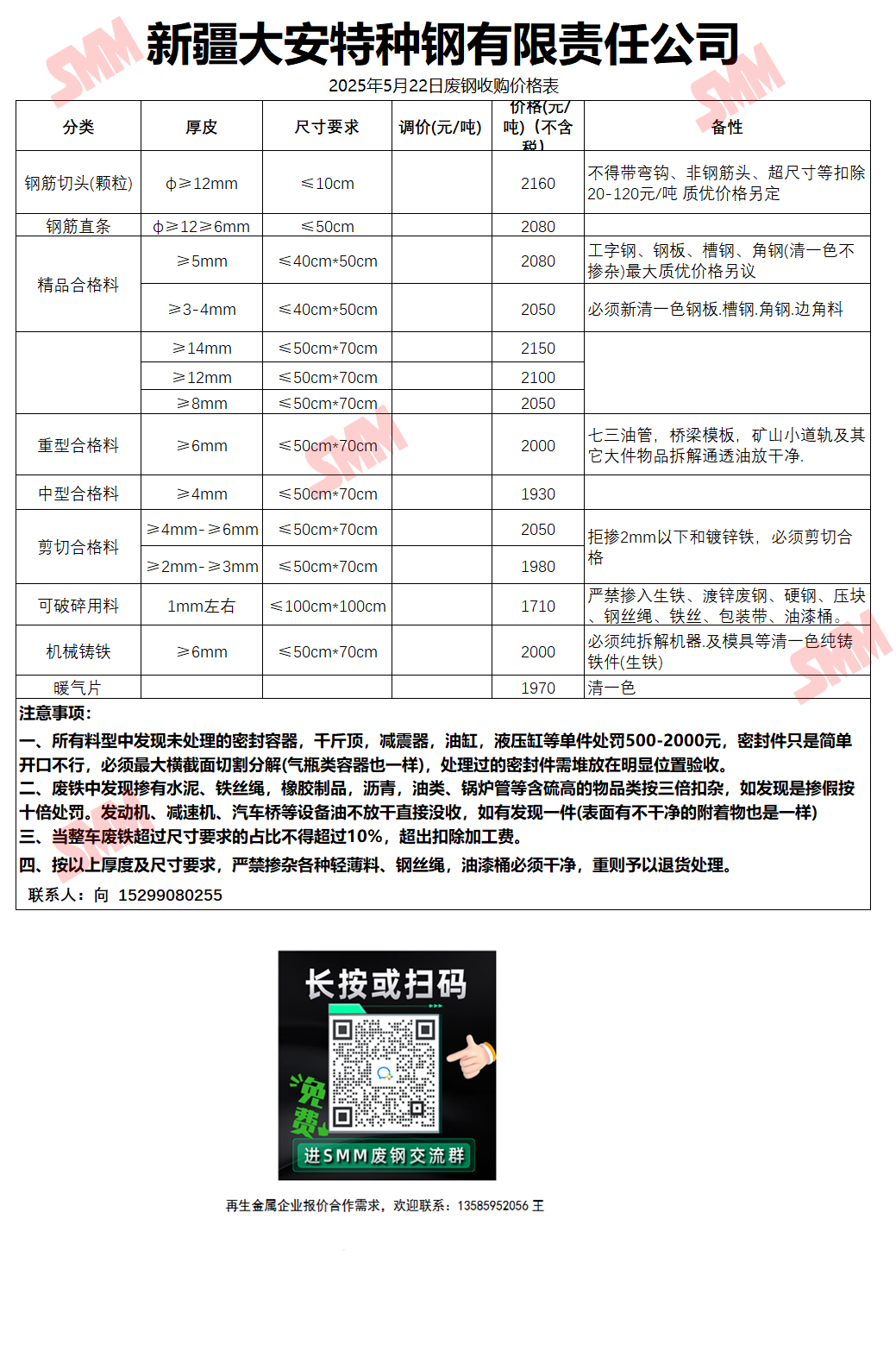 今日新疆大安钢铁 废钢收购报价已更新,有货的朋友欢迎联系我们!