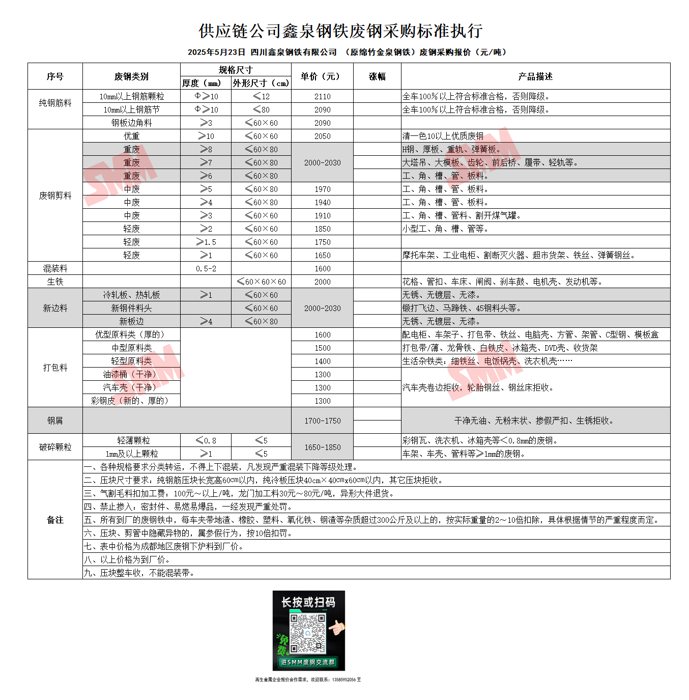 5月23日鑫泉钢铁(原绵竹金泉钢铁) 废钢采购报价