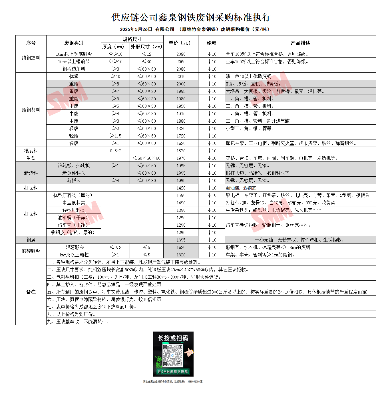 5月26日14时53分鑫泉钢铁(原绵竹金泉钢铁) 废钢采购报价