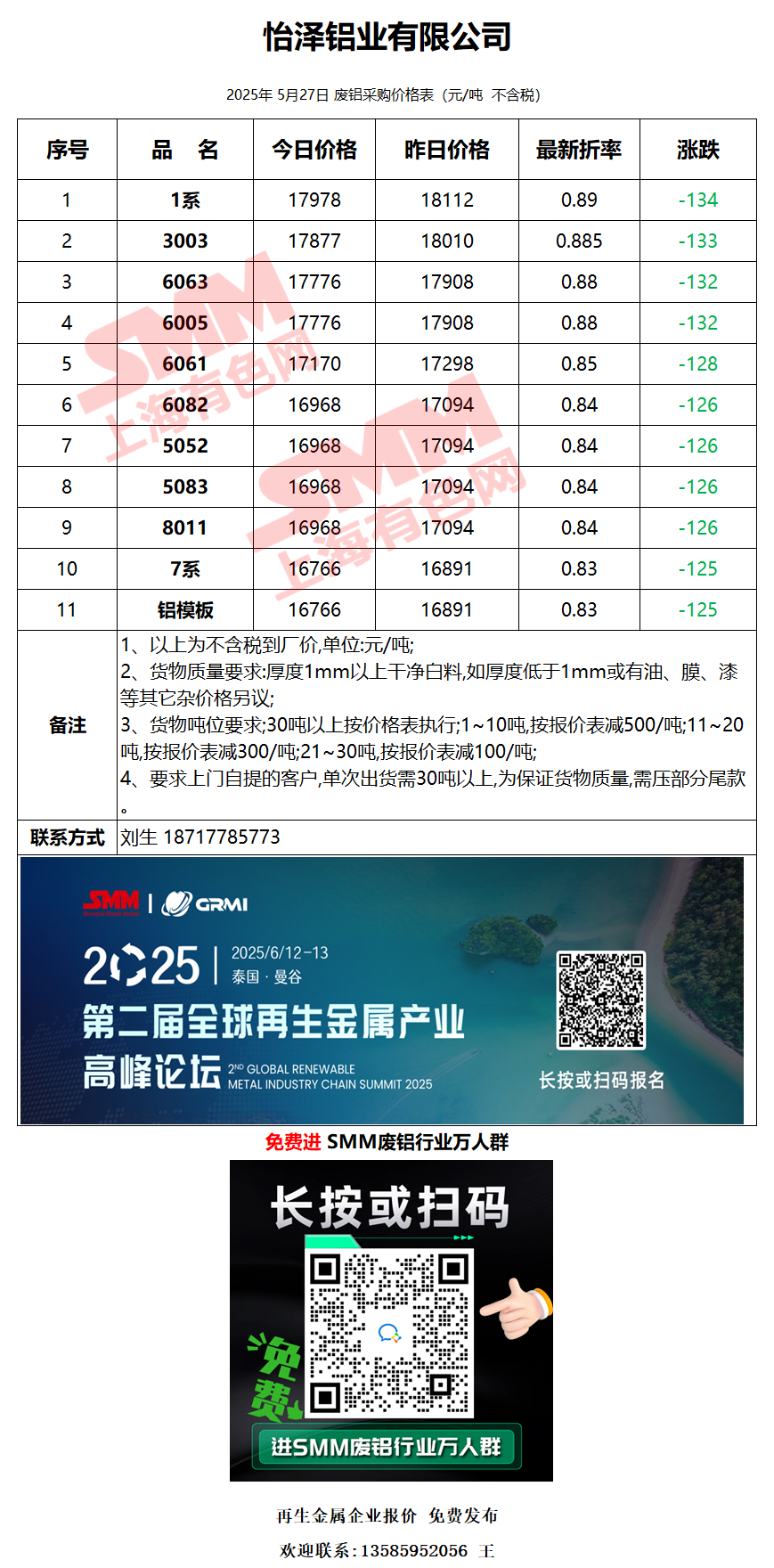 今日怡泽铝业 废铝采购报价已更新,有货的朋友欢迎联系我们!