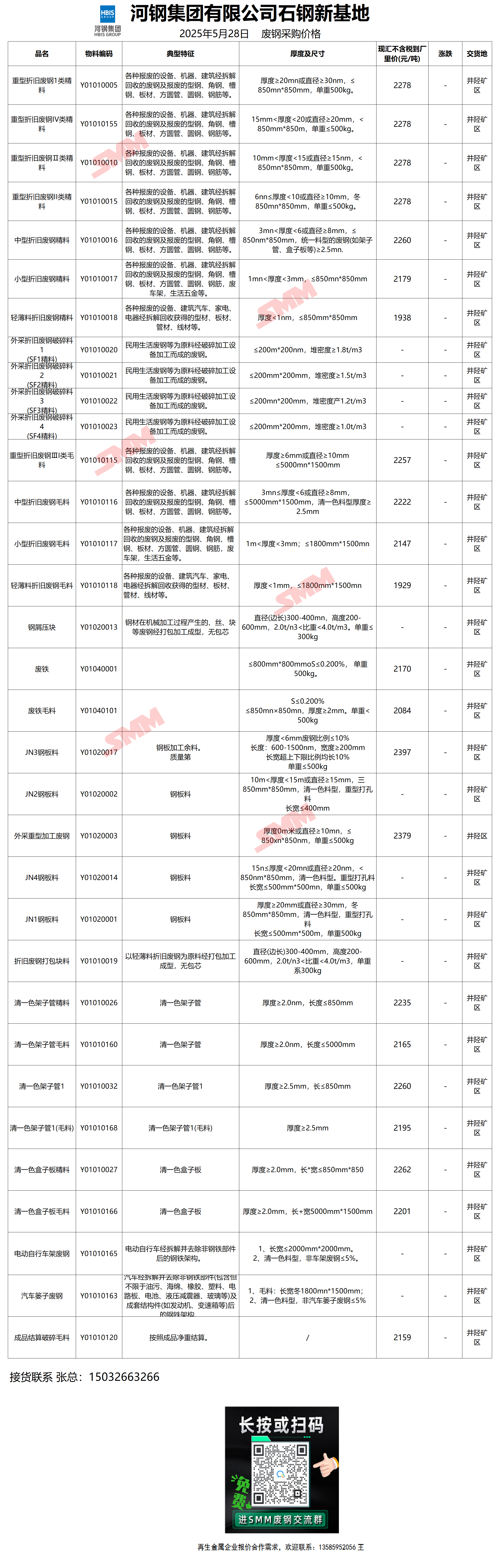 今日 河钢石钢新基地 废钢采购报价已更新,有货的朋友欢迎联系我们!