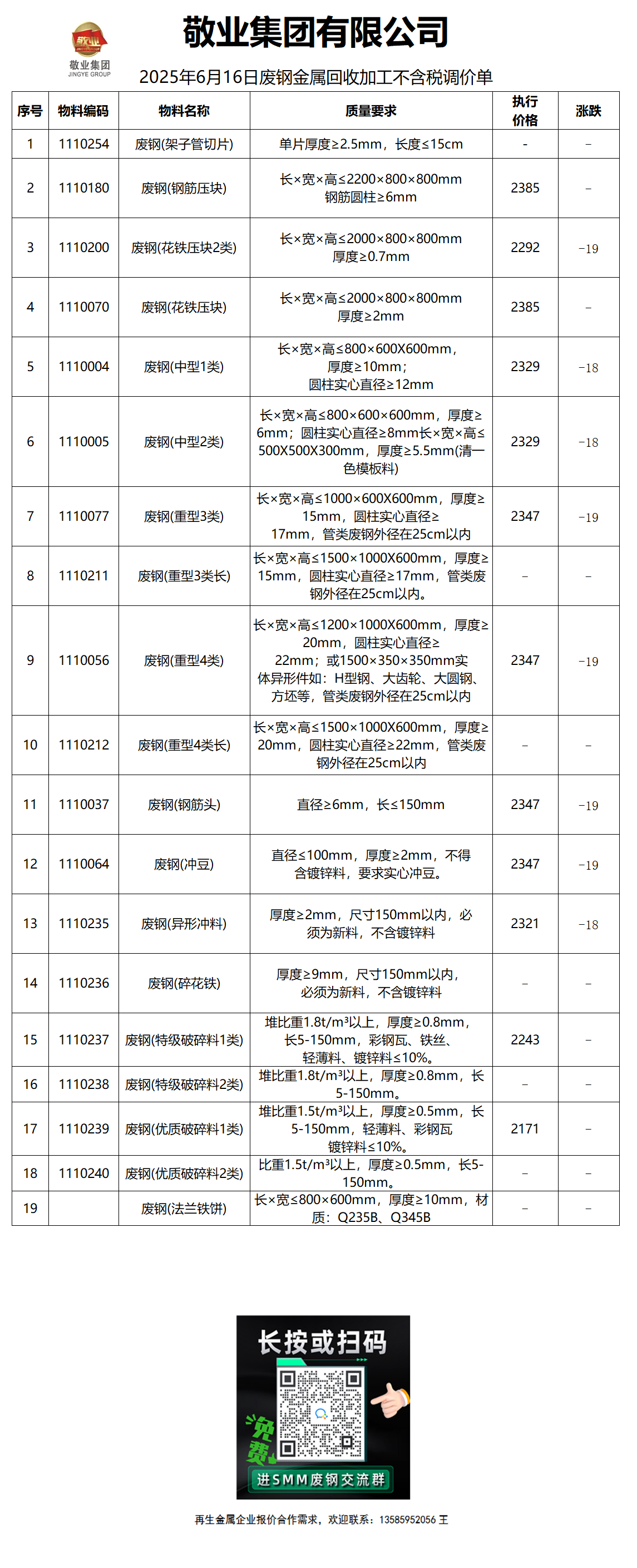 今日敬业钢铁本部 废钢采购报价已更新,有货的朋友欢迎联系我们!