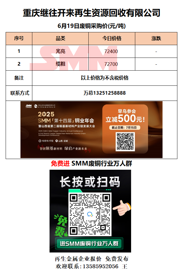 今日重庆继往开来 废铜采购报价已更新,有货的朋友欢迎联系我们!