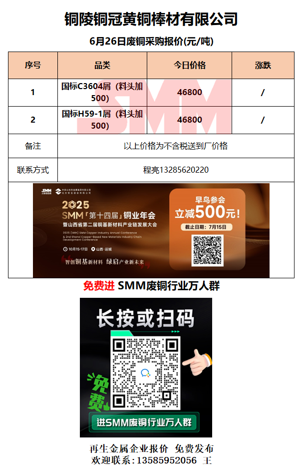 今日铜陵铜冠 废铜采购报价已更新,有货的朋友欢迎联系我们!