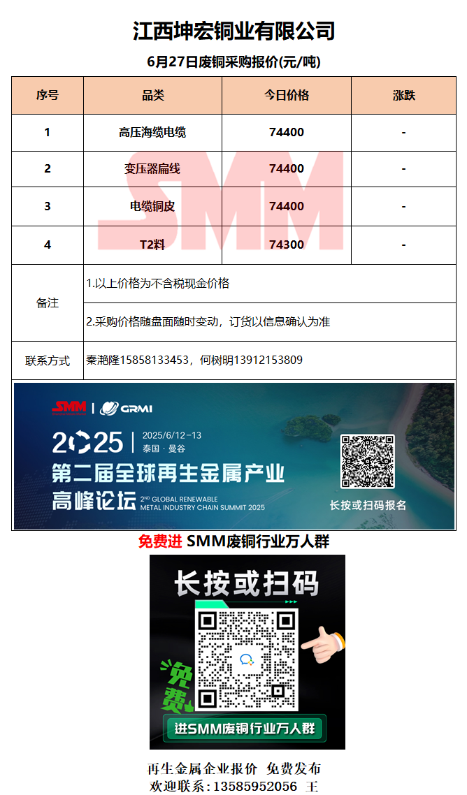 今日江西坤宏 废铜采购报价已更新,有货的朋友欢迎联系我们!
