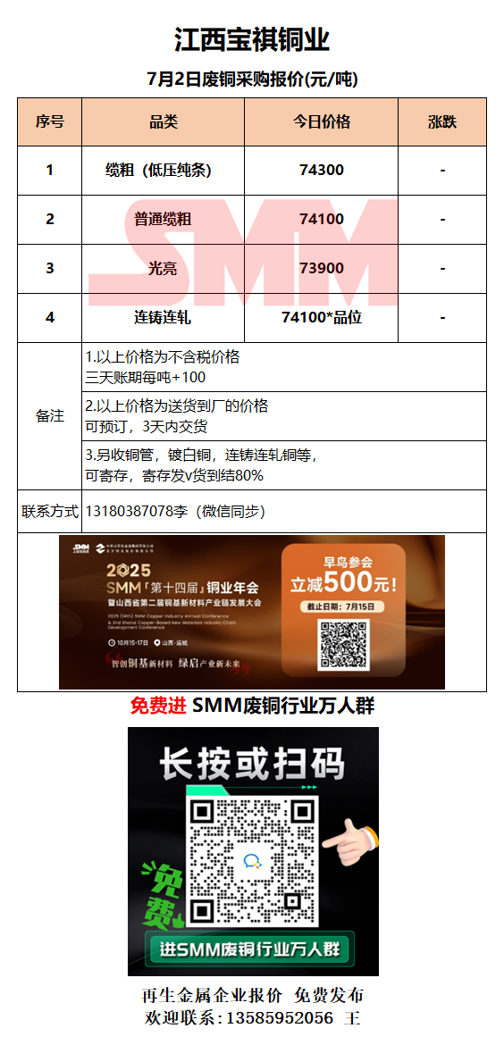 7月2日江西宝祺 废铜采购报价