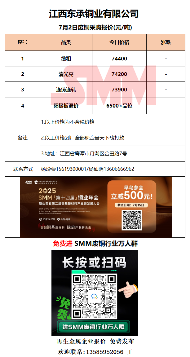 今日江西东承 废铜采购报价已更新,有货的朋友欢迎联系我们!