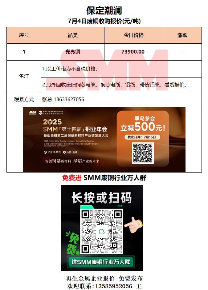 今日保定潮澜 废铜采购报价已更新,有货的朋友欢迎联系我们!