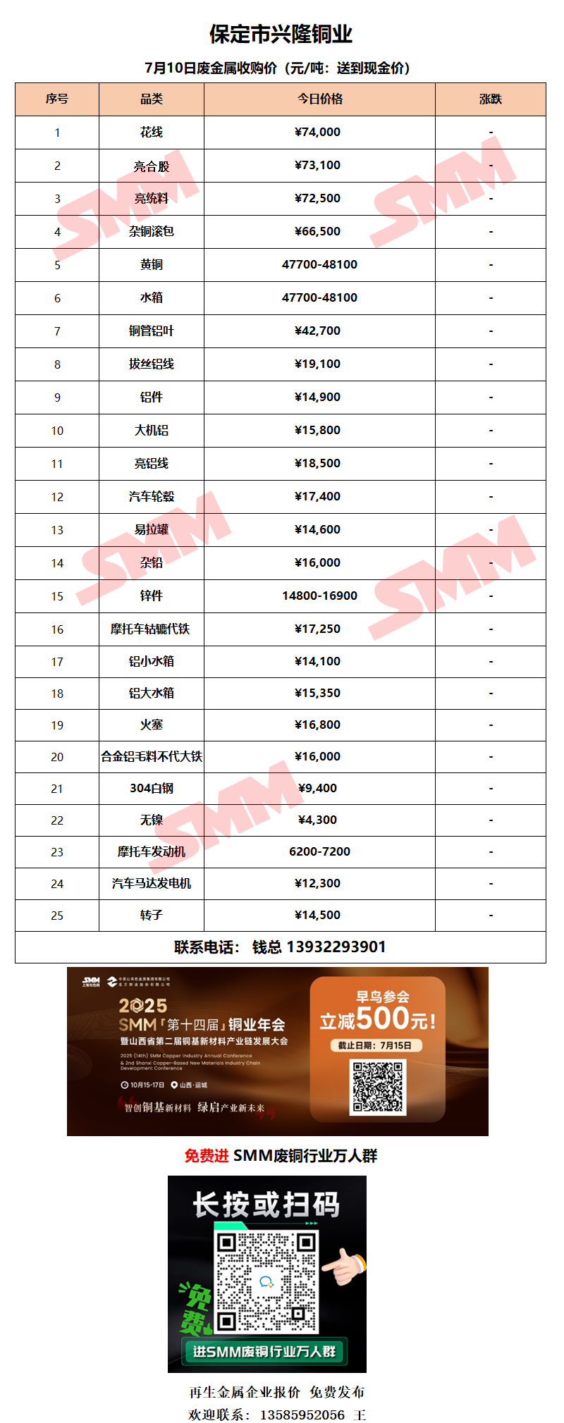 7月10日保定兴隆铜业 废铜采购报价