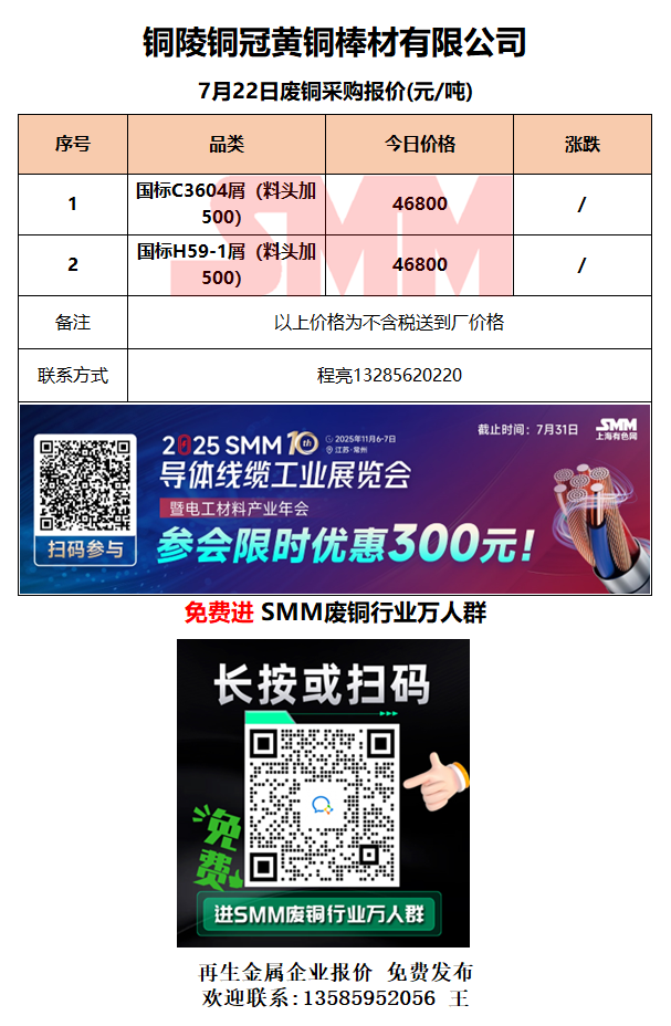 7月22日铜陵铜冠 废铜采购报价