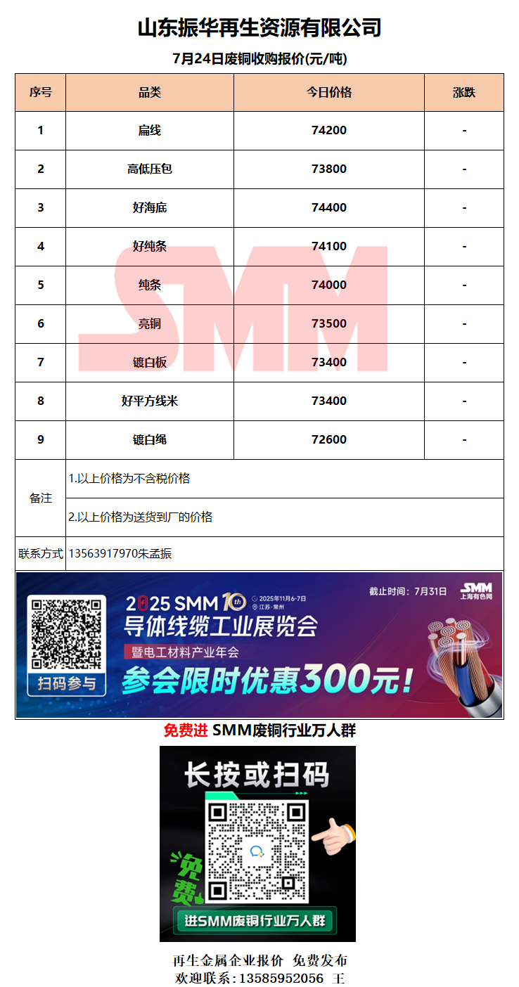 7月24日山东振华 废铜采购报价