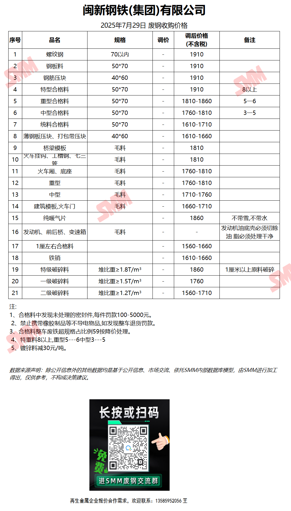今日闽新钢铁 废钢收购报价已更新,有货的朋友欢迎联系我们!