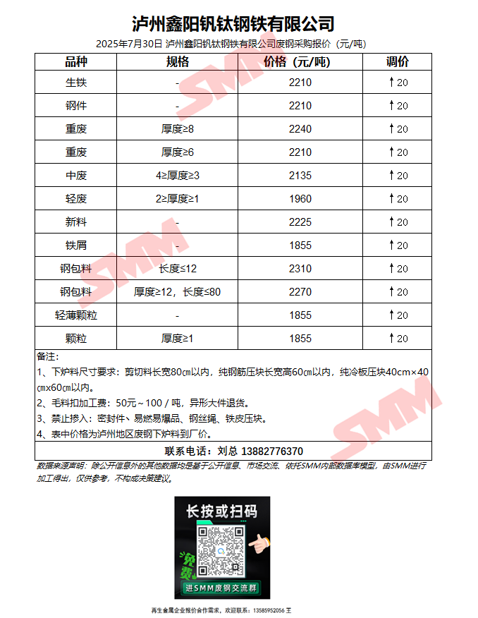 7月30日13时 泸州鑫阳钒钛 废钢采购报价
