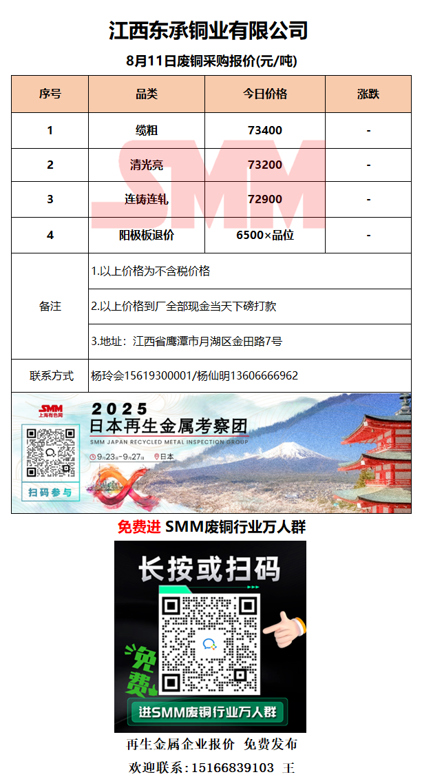今日江西东承 废铜采购报价已更新,有货的朋友欢迎联系我们!