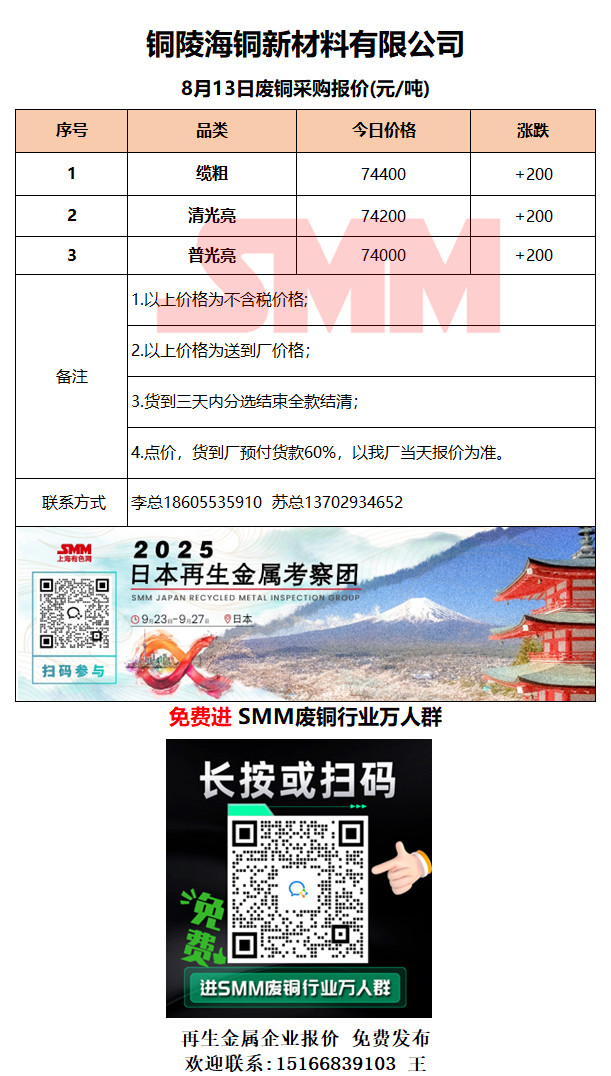 今日铜陵海铜 废铜采购报价已更新,有货的朋友欢迎联系我们!