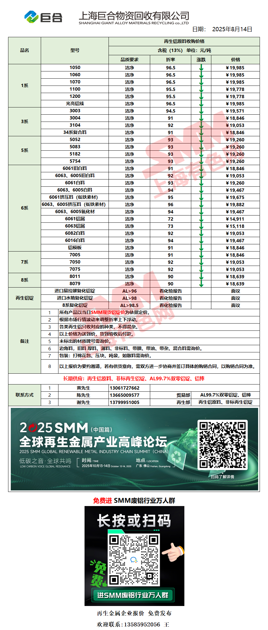 今日上海巨合 废铝采购报价已更新,有货的朋友欢迎联系我们!
