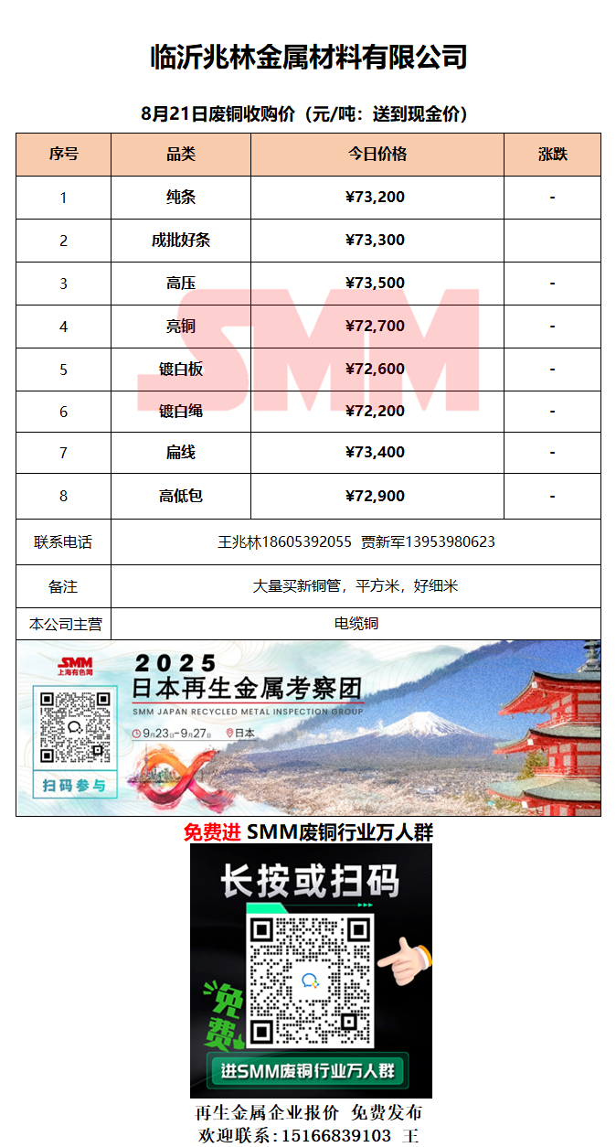 今日临沂兆林金属 废铜采购报价已更新,有货的朋友欢迎联系我们!