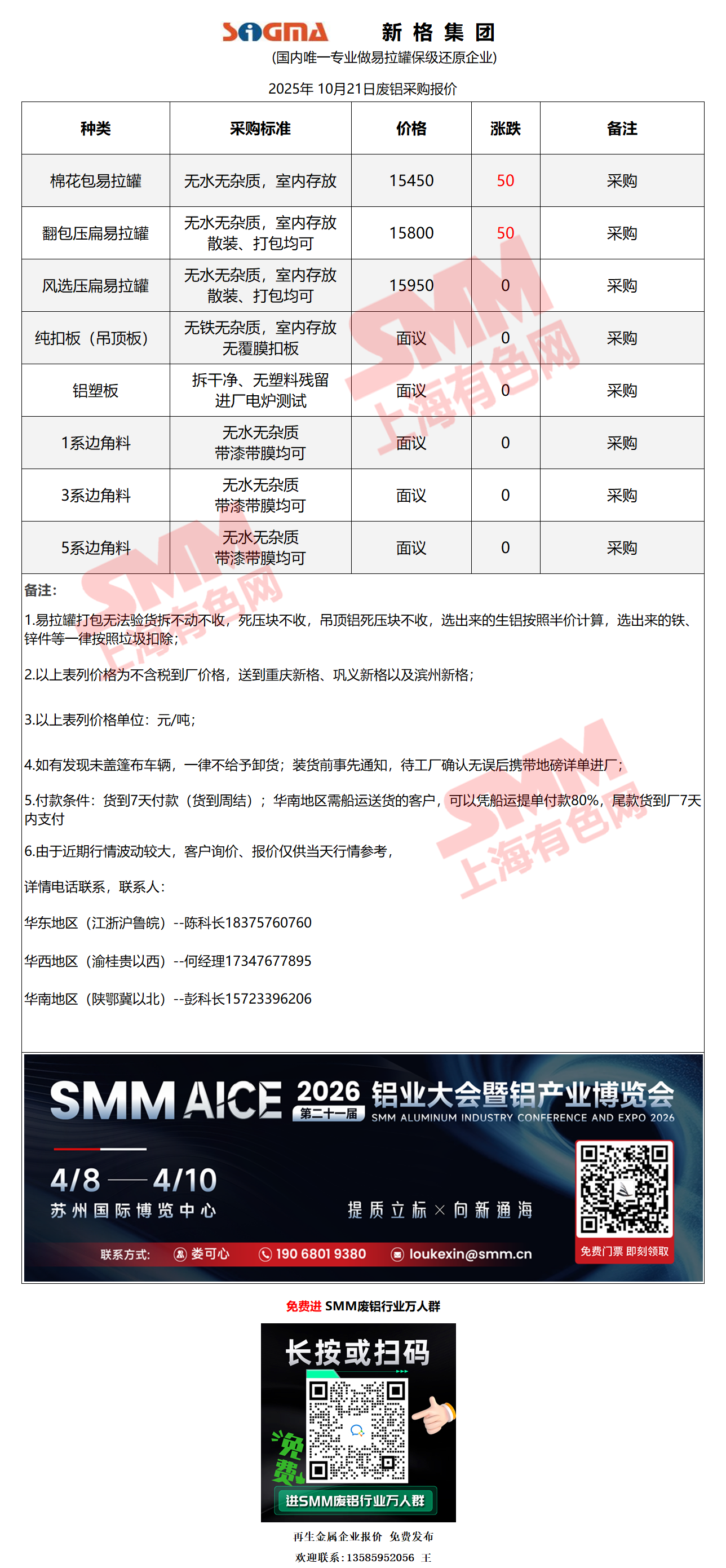 10月21日新格集团 废铝采购报价