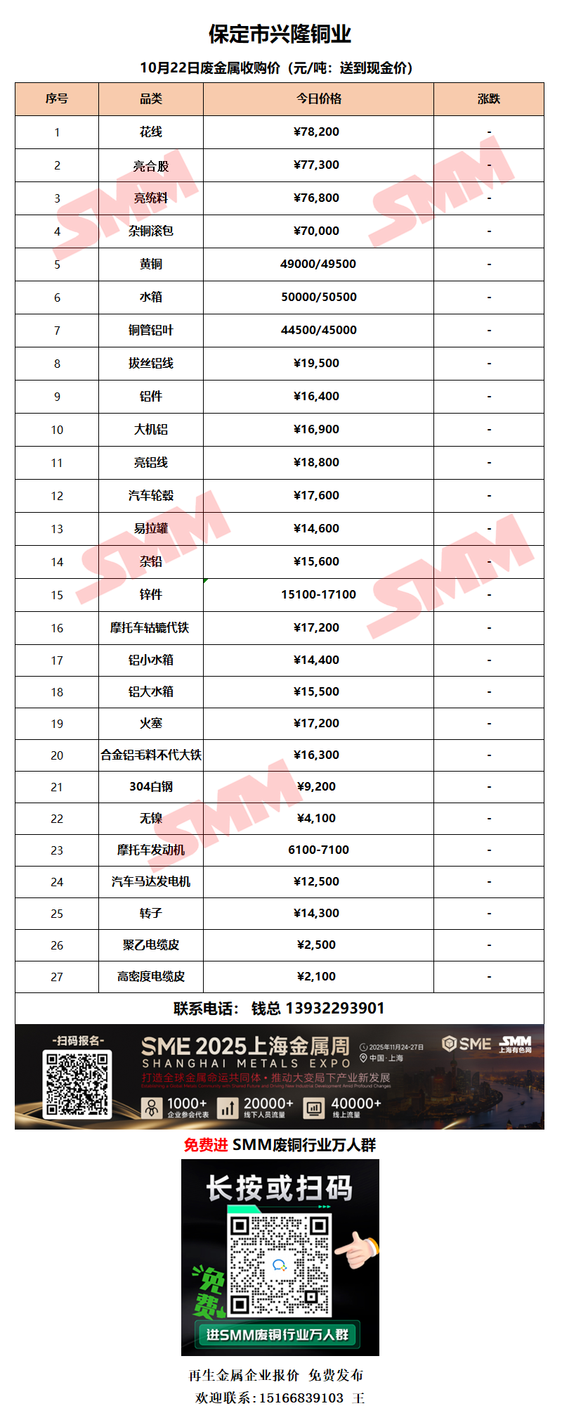 今日保定兴隆铜业 废铜采购报价已更新,有货的朋友欢迎联系我们!
