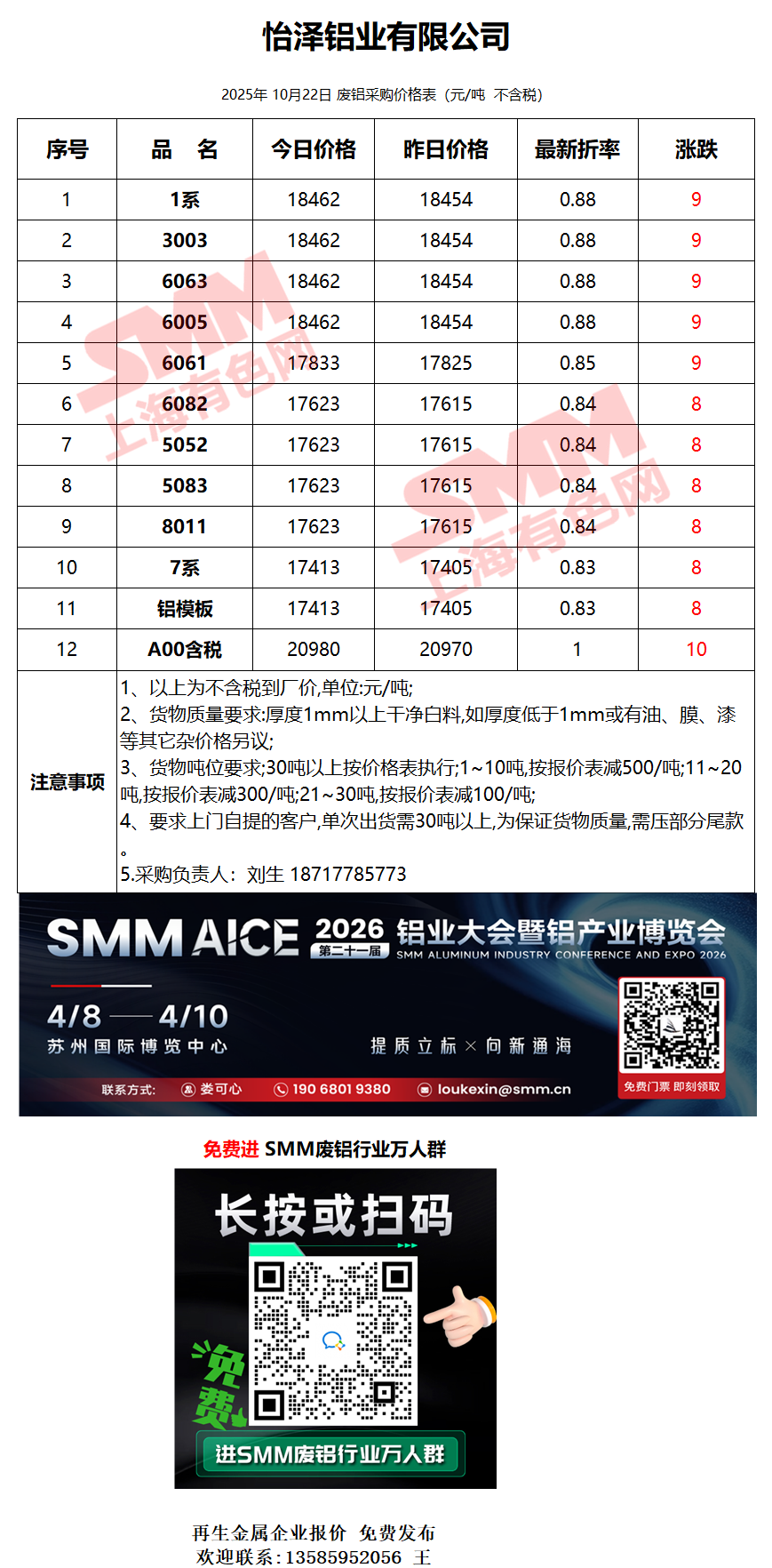 今日怡泽铝业 废铝采购报价已更新,有货的朋友欢迎联系我们!