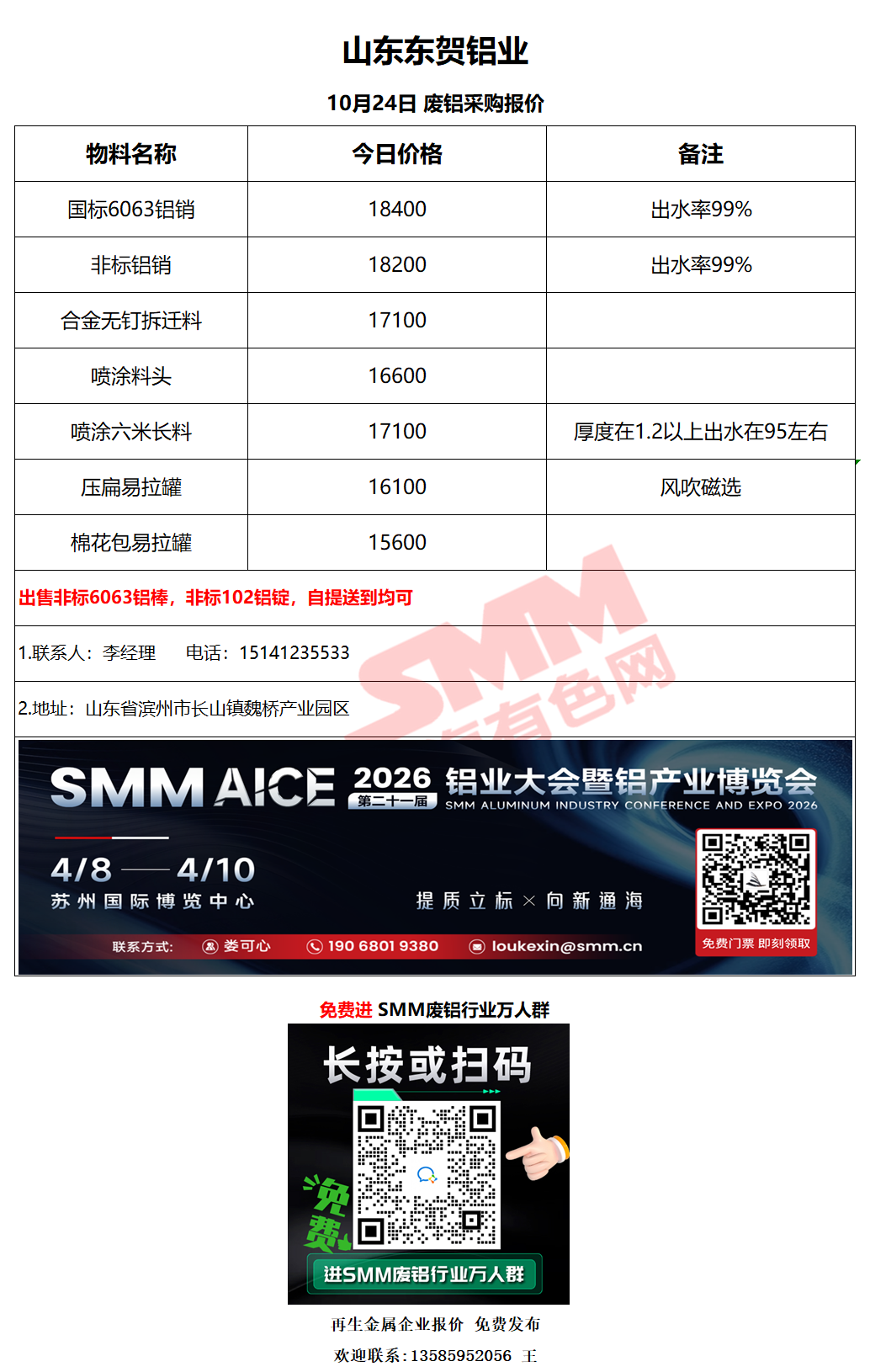 今日东贺铝业 废铝采购报价已更新,有货的朋友欢迎联系我们!