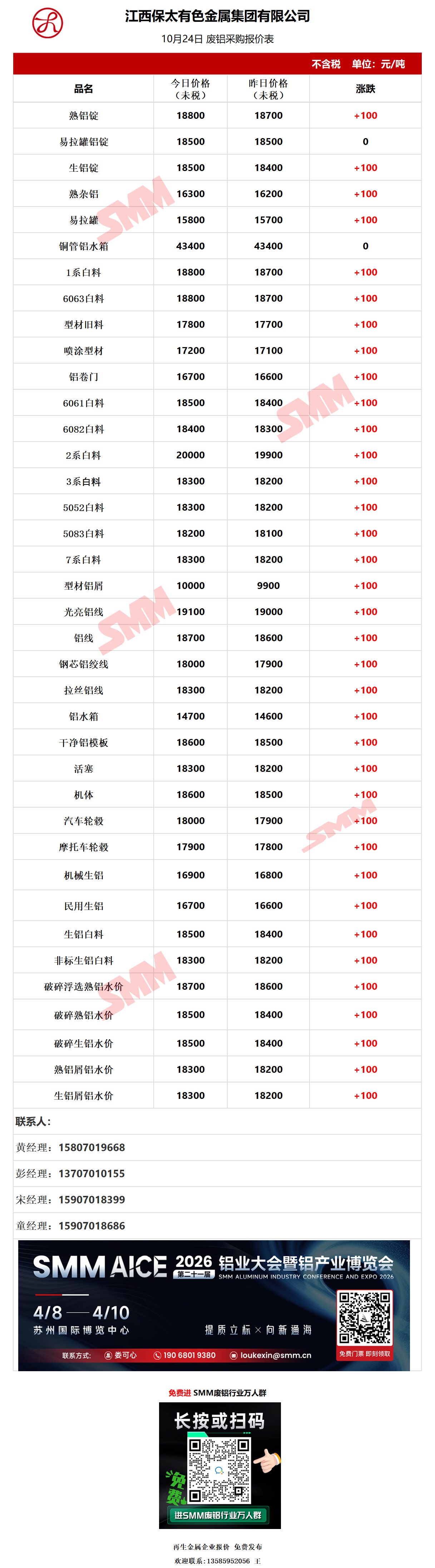 10月24日江西保太 废铝采购报价