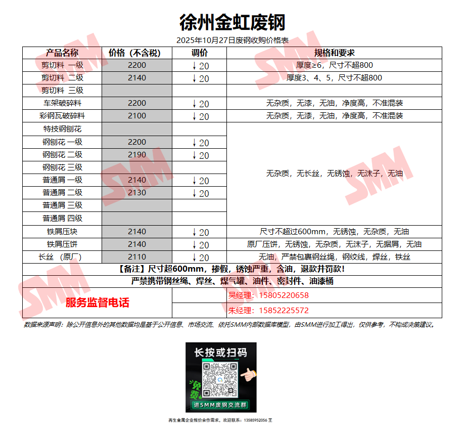 10月27日徐州金虹 废钢收购报价