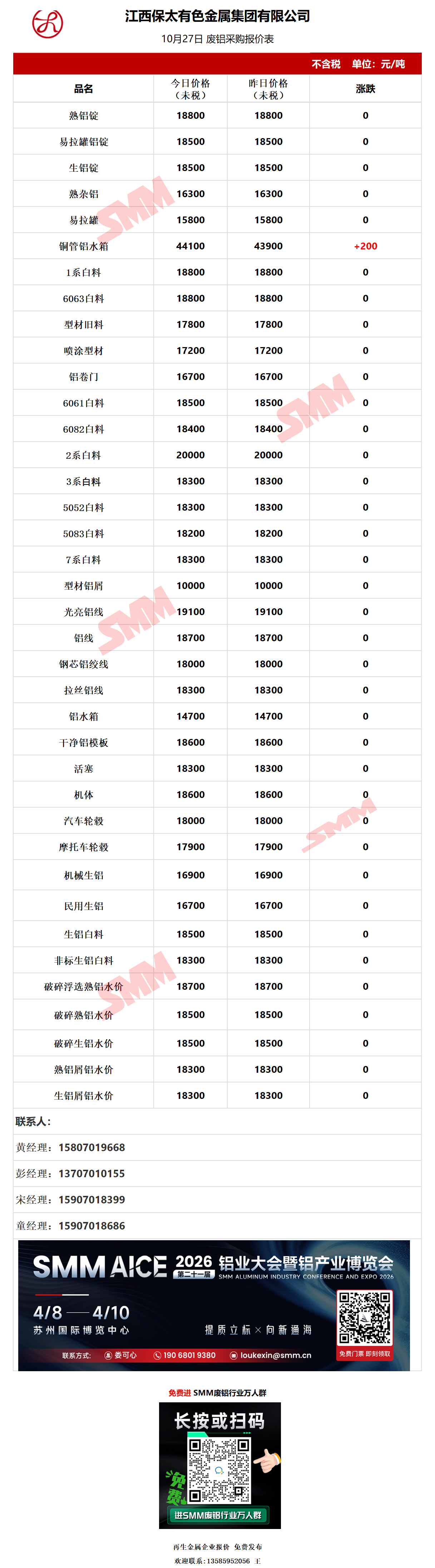 今日江西保太 废铝采购报价已更新,有货的朋友欢迎联系我们!